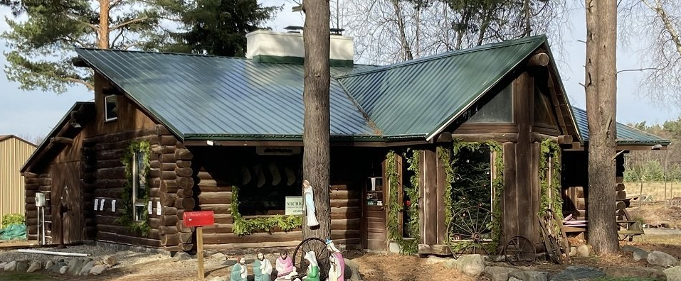 This Cabin was built from the original trees planted on the farm. Inside are Christmas gifts, some created by local crafters. The local Lions Club also does a fundraiser by selling hot dogs and cookies. A penny candy counter is also available. It is worth the visit.